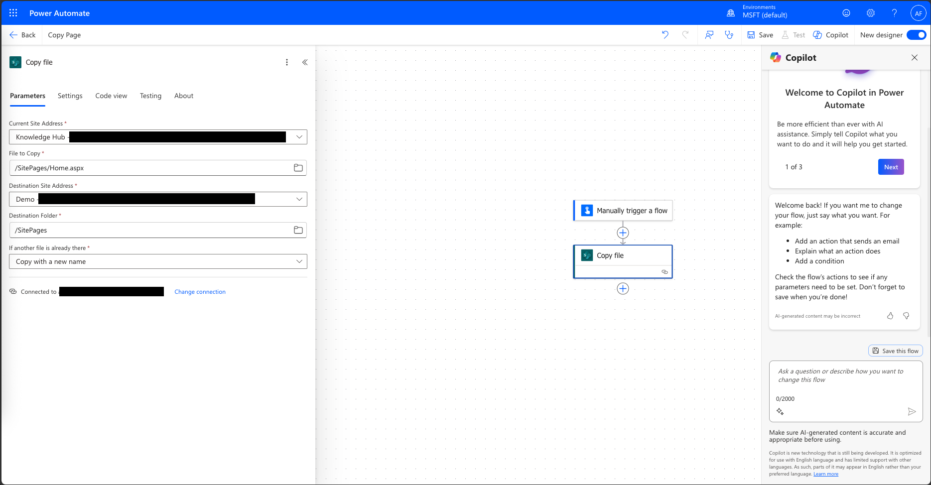 Run the Flow: Save and test the flow. Check the destination site to ensure the page has been copied successfully.